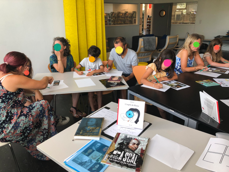 [PHOTO] : Atelier ‘Illustrer une citation de Blaise Pascal à la manière de EHOUI’, Médiathèque Hugo Pratt, Cournon-d’Auvergne