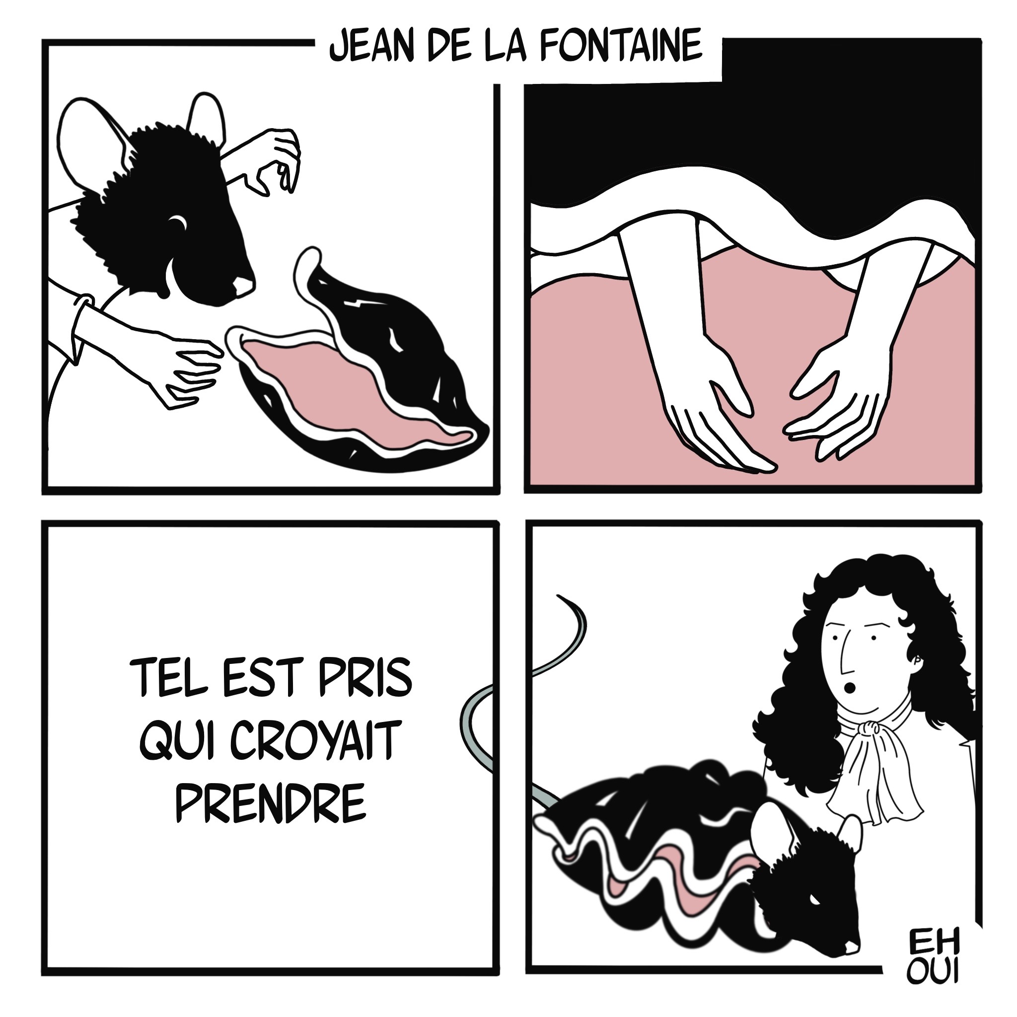 EHOUI propose une nouvelle lecture de citations de poètes, philosophes, femmes et hommes illustres. Les vignettes à quatre cases et les illustrations reprennent, synthétisent, interprètent de façon poétique et/ou ludique les vers, maximes, aphorismes de grands noms tels Blaise Pascal, Simone Weil, Friedrich Nietzsche, Hannah Arendt, Jean de La Fontaine, Michel de Montaigne, Voltaire, Virginia Woolf etc.